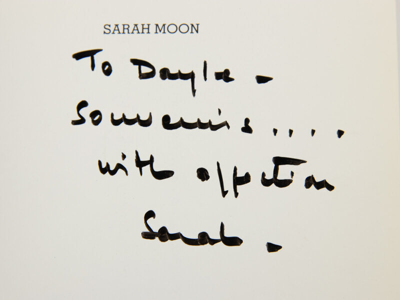 Signed by Sarah Moon, addressed to Dayle Haddon at interior.