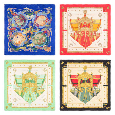 Hermès, Four Printed Silk Scarves