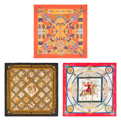 Hermès, Three Printed Silk Scarves 90
