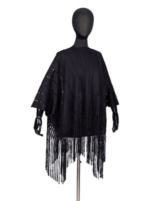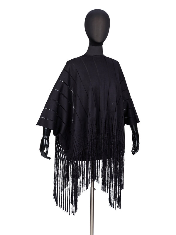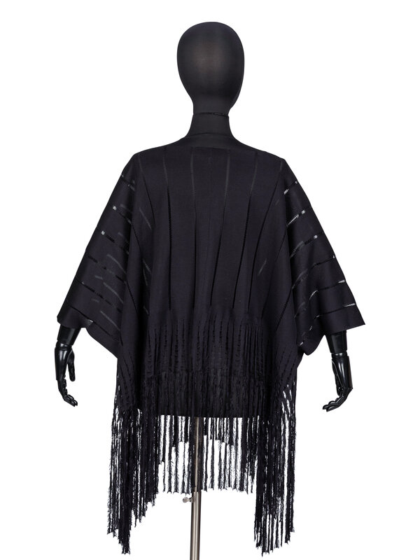 Yves Saint Laurent, Black Fringed Silk Poncho