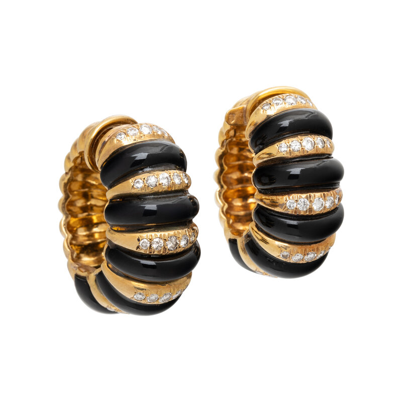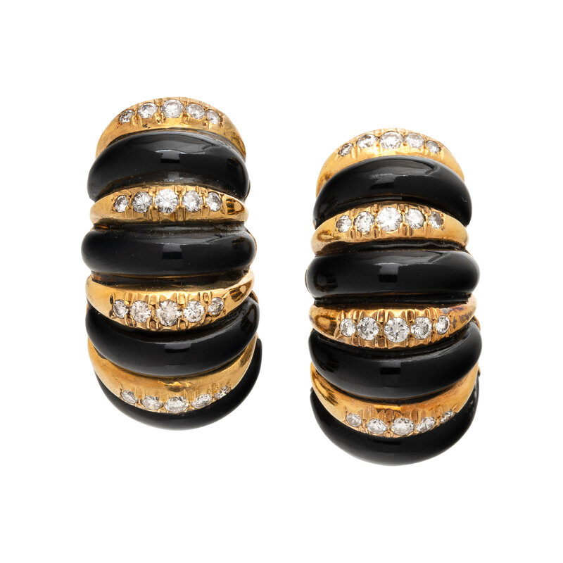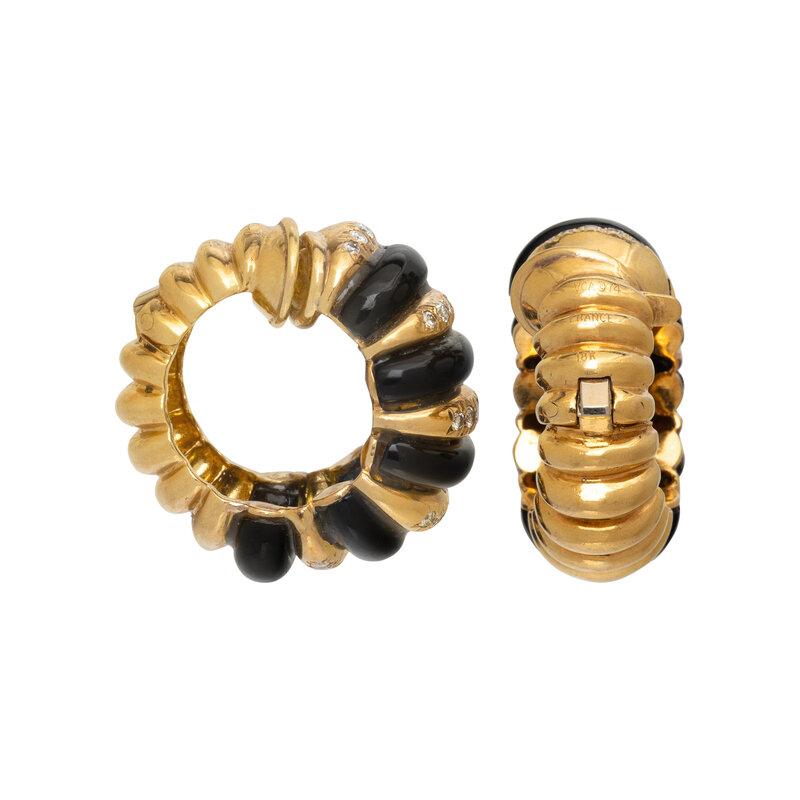 VAN CLEEF & ARPELS, YELLOW GOLD, DIAMOND, AND ONYX EARRINGS