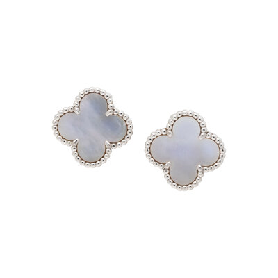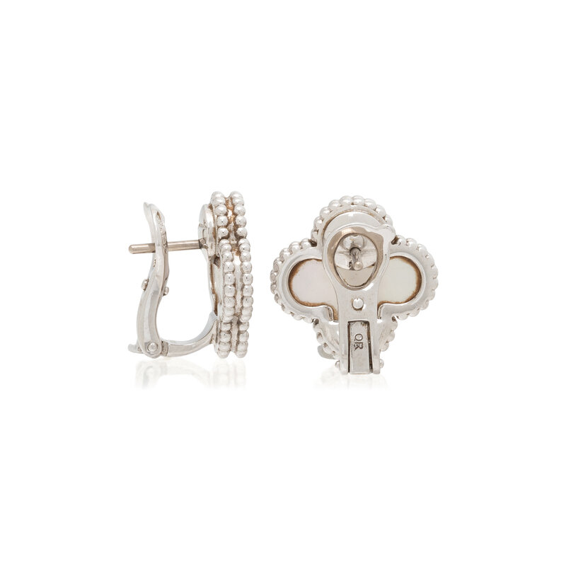 VAN CLEEF & ARPELS, MOTHER-OF-PEARL AND WHITE GOLD 'ALHAMBRA' EARRINGS