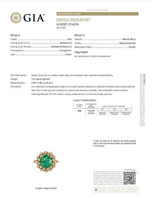GIA, 2025, Report No. 2231640296, Natural Beryl, Natural Emerald, Russia, No indications of clarity enhancement