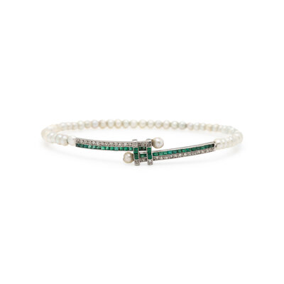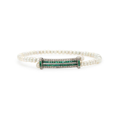 DIAMOND, EMERALD, AND PEARL BRACELET