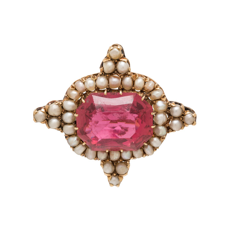 ANTIQUE, PINK TOURMALINE AND SEED PEARL BROOCH