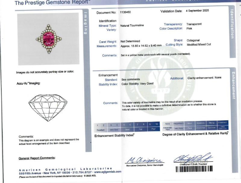 AGL, 2023, Report No. 1135460, Natural Tourmaline
