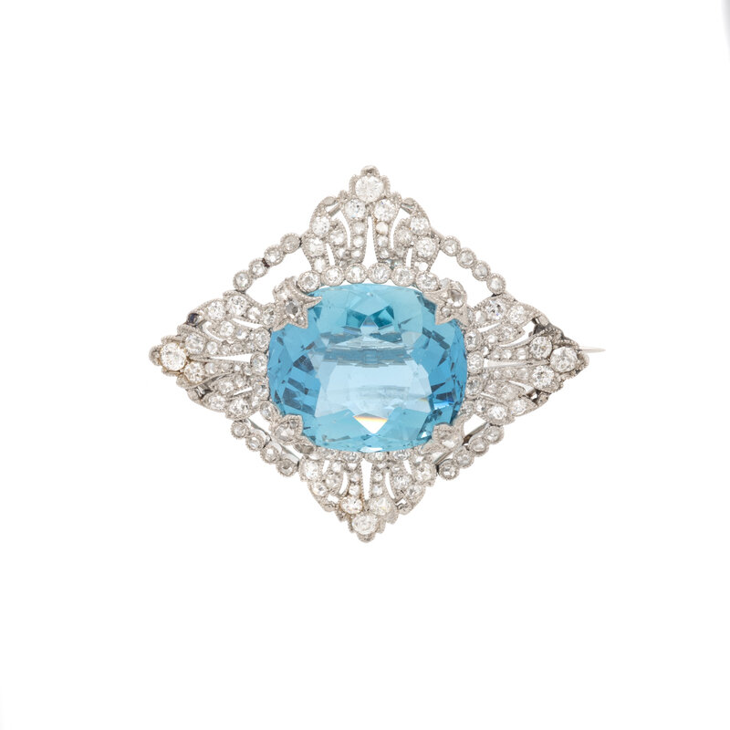 EDWARDIAN, AQUAMARINE AND DIAMOND BROOCH
