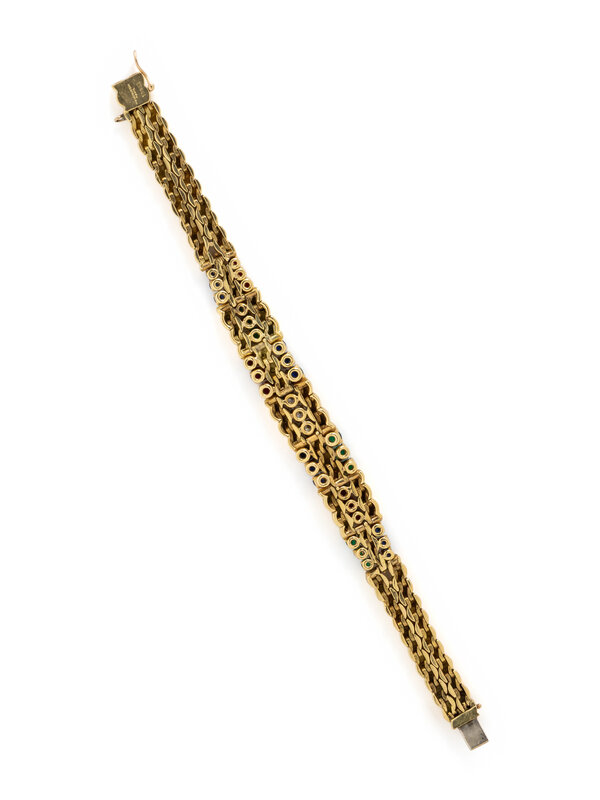 MAUBOUSSIN, FRENCH, YELLOW GOLD, EMERALD, DIAMOND, RUBY, AND SAPPHIRE BRACELET