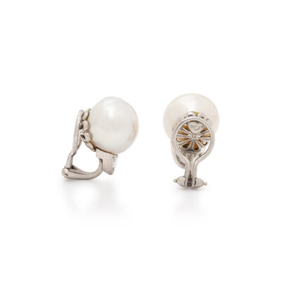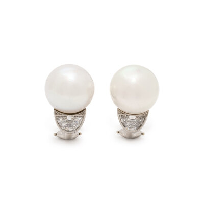 CULTURED PEARL AND DIAMOND EARRINGS