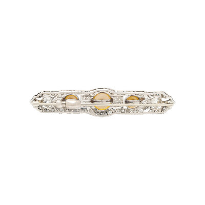 PLATINUM, CULTURED PEARL, AND DIAMOND BAR PIN