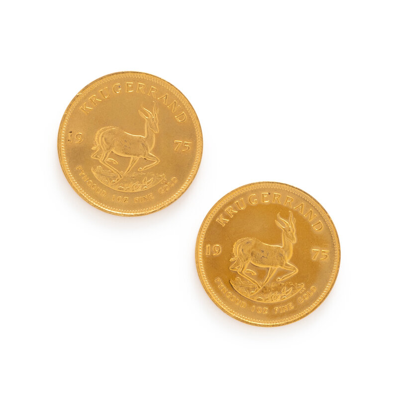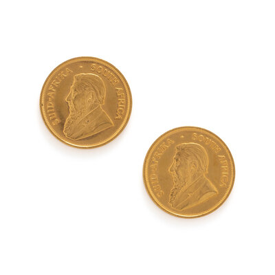 A PAIR OF YELLOW GOLD KRUGERANDS