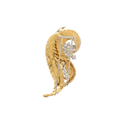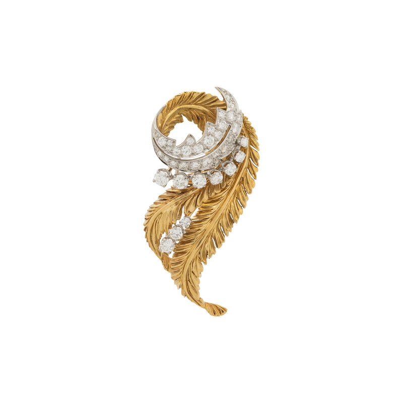 MCTEIGUE FOR BETTERIDGE, DIAMOND, YELLOW GOLD, AND PLATINUM LEAF BROOCH