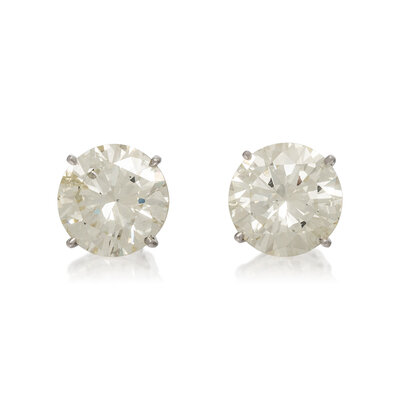Set with round diamonds weighing 6.61 and 6.52 carats. Mounted in platinum. 1/2 inch long.
