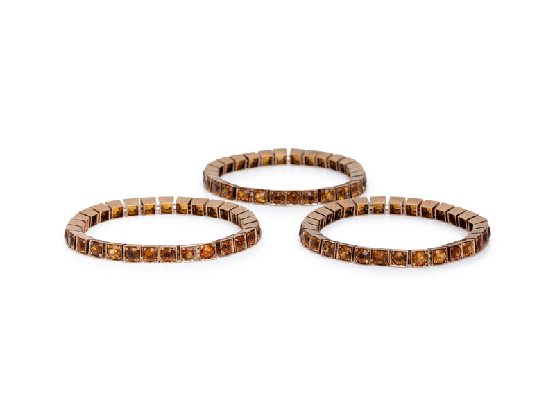 Three matching bracelets set with round citrine measuring approximately 4.80 - 5.00 x 3.20 mm. Mounted in rose gold. 6 5/8 inches, 6 7/8 inches, and 6 7/8 inches long.