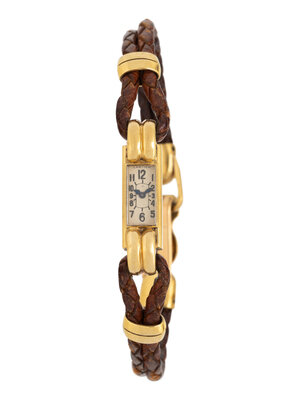 Bracelet/Strap: Brown leather with 18K yellow gold buckle