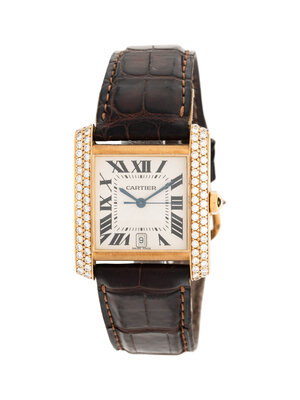 CARTIER, YELLOW GOLD AND DIAMOND 'TANK FRANÇAISE' WATCH