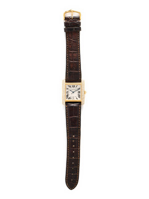 Bracelet/Strap: Brown leather signed Cartier 18K yellow gold Cartier buckle