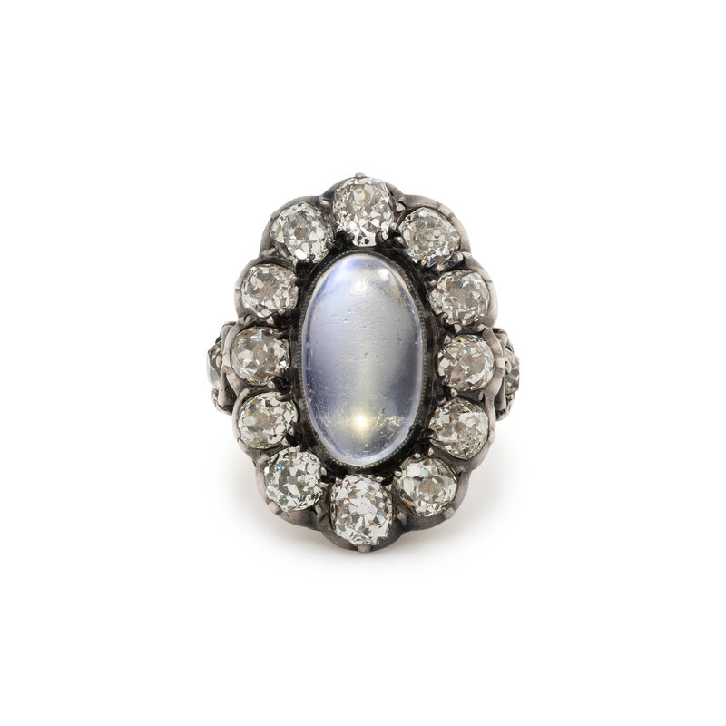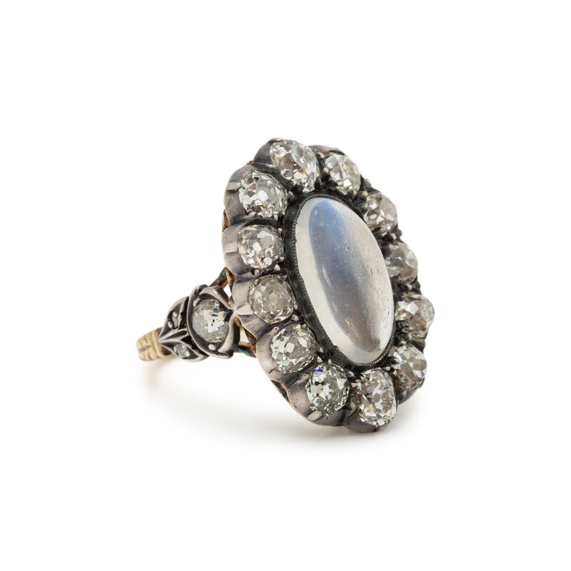 ANTIQUE, MOONSTONE AND DIAMOND RING