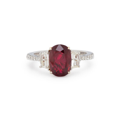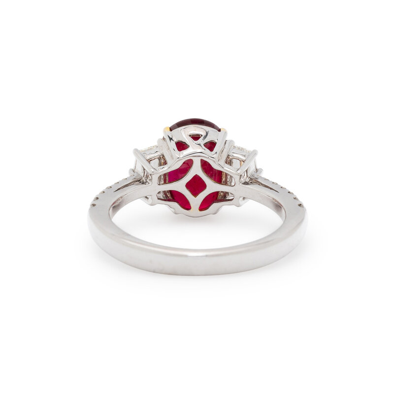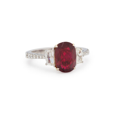 BURMESE RUBY, DIAMOND, AND WHITE GOLD RING
