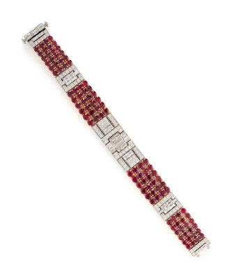 UNHEATED BURMESE RUBY AND DIAMOND BRACELET