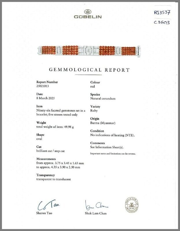 Gübelin, 2025, Report No. 25021013, Natural corundum, Ruby, Burma (Myanmar), No indications of heating.