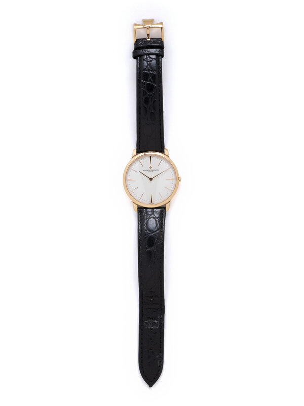 Bracelet/Strap: Black leather with 18K yellow gold Vacheron Constantin buckle