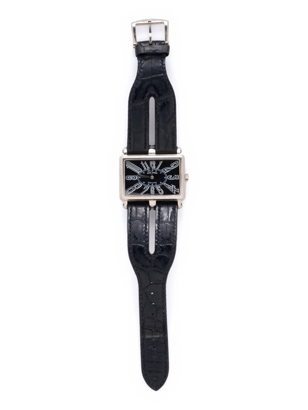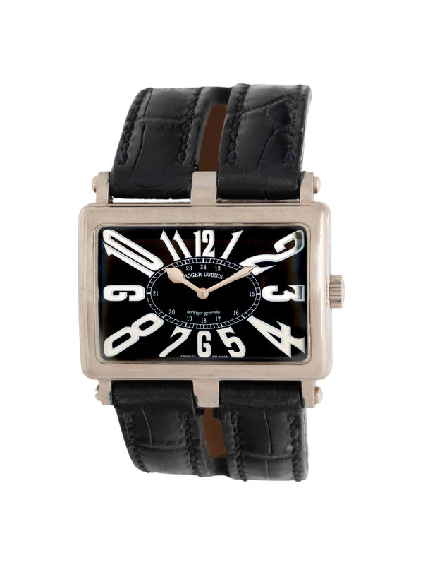 Bracelet/Strap: Roger Dubuis black leather strap with Roger Dubuis 18K white gold buckle
