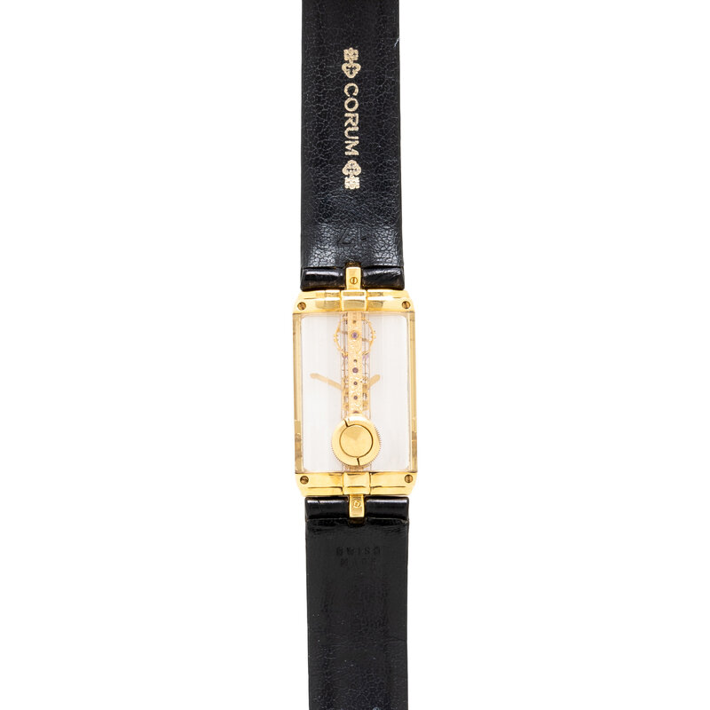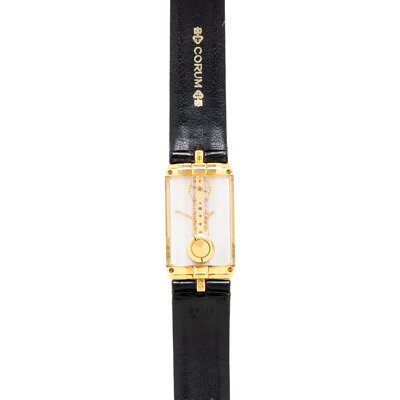Bracelet/Strap: Corum black leather with Corum 18K gold buckle