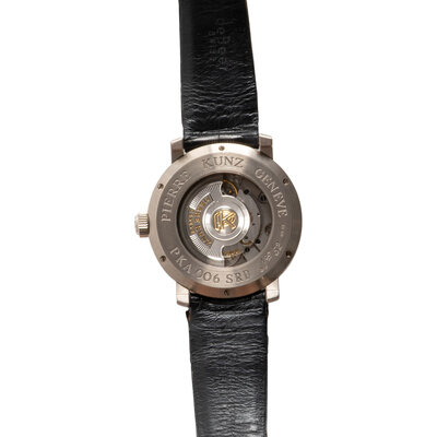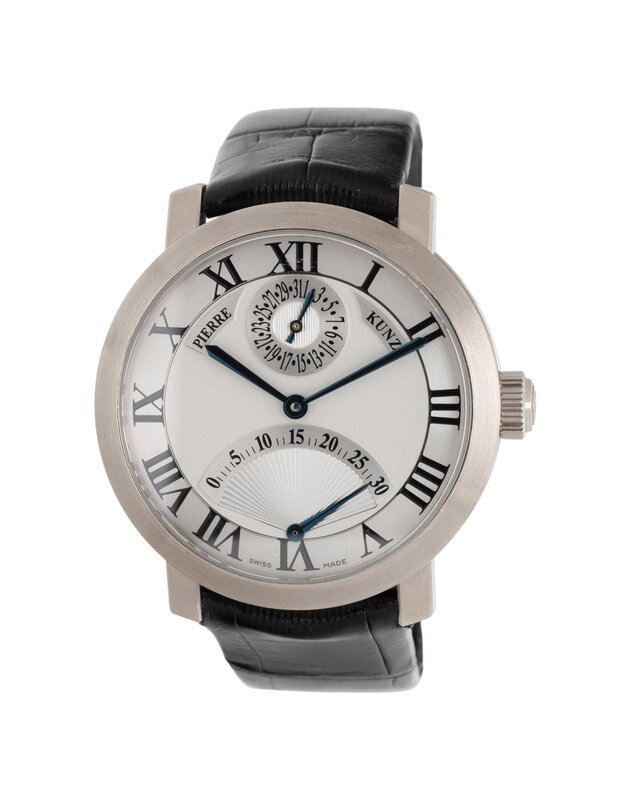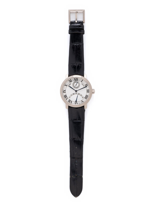 Bracelet/Strap: Black leather with Pierre Kunz 18K white gold buckle