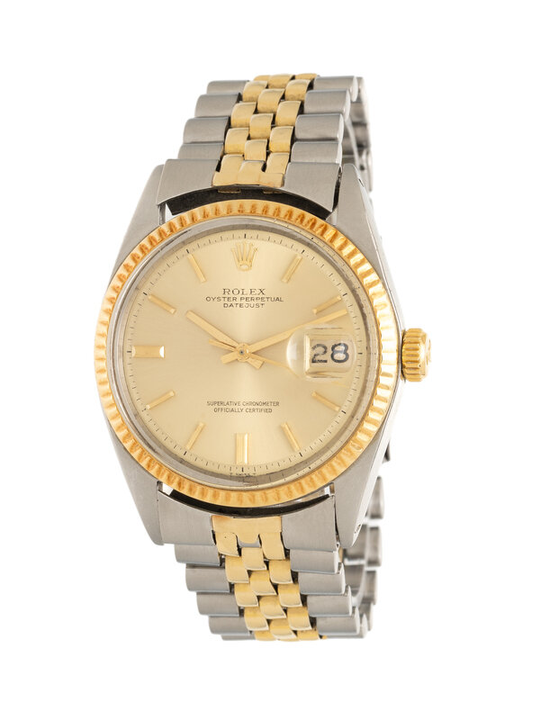 ROLEX, REF. 1601 18K YELLOW GOLD AND STAINLESS STEEL 'DATEJUST' WATCH WITH OVAL LINK JUBILEE 'MADE IN U.S.A.' BRACELET, BOX & PAPERS