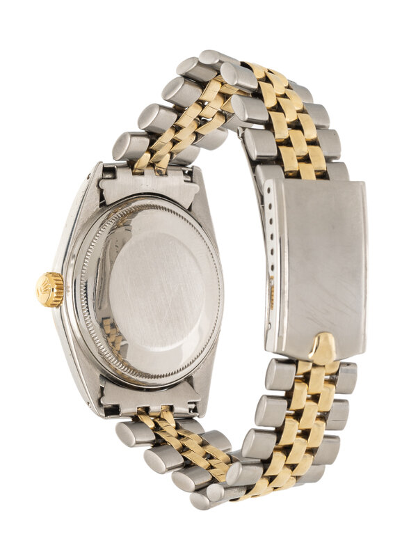 Bracelet/Strap: Stainless steel and yellow gold "made in USA" oval-link Jubilee bracelet