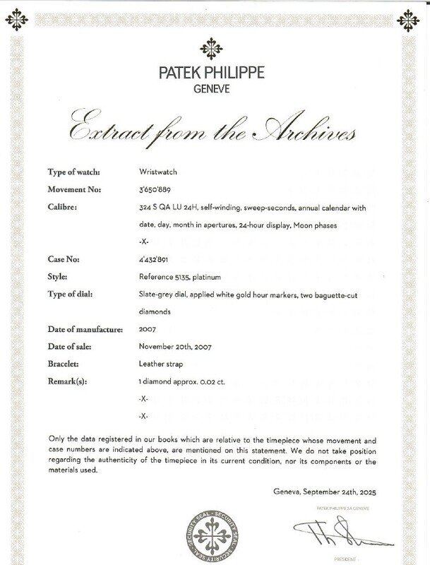 PATEK PHILIPPE, REF. 5135P PLATINUM ANNUAL CALENDAR MOONPHASE WATCH, BOX & MANUALS, EXTRACT FROM THE ARCHIVES