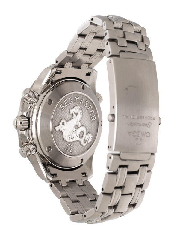 Stamps: Case back: SEAMASTER (maker's mark). Case interior: GJA ACIER INOXYDABLE (maker's mark) OMEGA WATCH CO. GX FAB. SUISSE SWISS MADE 178 0523. Movement: (maker's mark) OMEGA 1164 TWENTY-FIVE 25 JEWELS 85022389. Clasp: OMEGA SEAMASTER PROFESSIONAL 1504/826 STAINLESS STEEL SWISS MADE (maker's mark).
