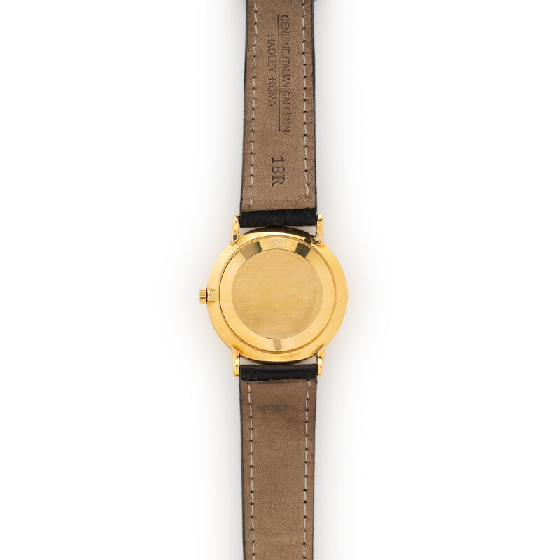 Stamps: Case: 750 (Swiss hallmarks). Case interior: PATEK-PHILIPPE GENEVE SWISS 18K 750 2843731 3919. Movement: 1810154 PATEK PHILIPPE GENEVE 215.