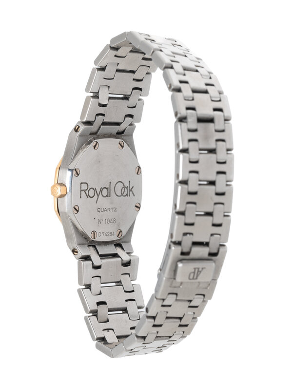 Stamps: Case back: Royal Oak Quartz No. 1048 D74284. Clasp: AUDEMARS PIGUET STAINLESS STEEL SWISS