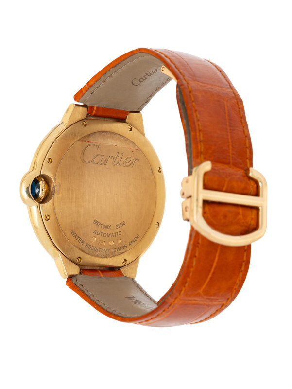 Bracelet/Strap: Cartier orange leather strap with Cartier 18K yellow gold deployant clasp