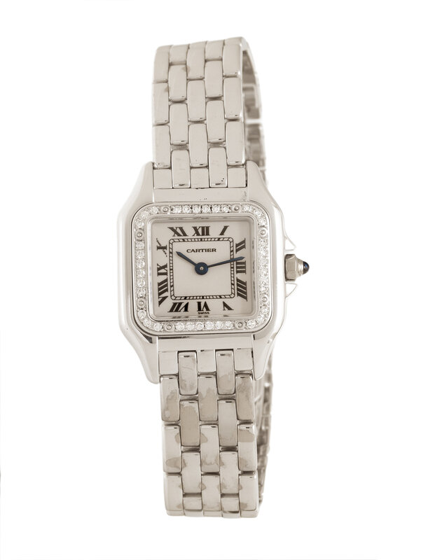 CARTIER, REF. 1660 18K WHITE GOLD SMALL 'PANTHÈRE' WATCH WITH FACTORY DIAMOND BEZEL