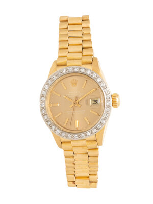 ROLEX, REF. 6917 18K YELLOW GOLD 'LADY DATEJUST' WATCH WITH FACTORY DIAMOND BEZEL, BOX & BOOKLETS