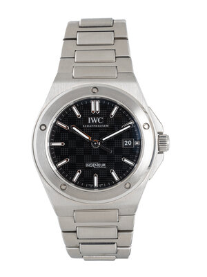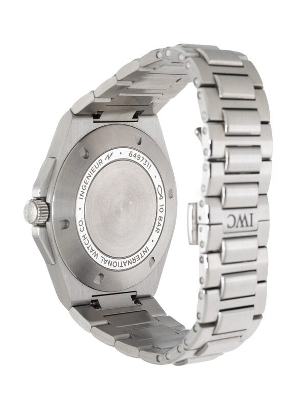 Stamps: Case back: 10 BAR INTERNATIONAL WATCH CO. INGENIEUR 6497311. Clasp: IWC MADE IN FRANCE STAINLESS STEEL BT.