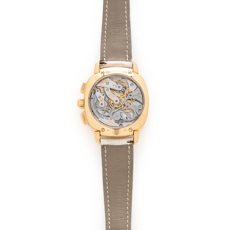Bracelet/Strap: Patek Philippe white leather strap with Patek Philippe 18K rose gold buckle