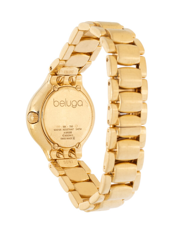 Stamps: Case back: beluga 18K 750 (Swiss hallmarks) WATER RESISTANT 5ATM A164200 8003N1S SWISS MADE. Bracelet: 750 (Swiss hallmarks) EBEL L02J50N1.