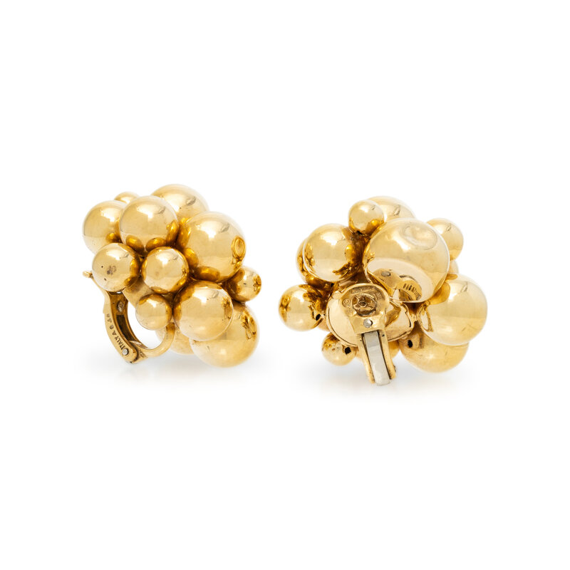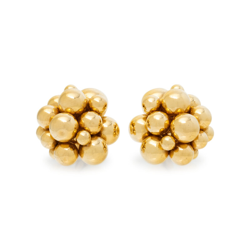 Designed as clusters of spheres. 18 karat yellow gold. 1 1/4 inches long.