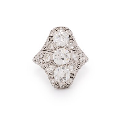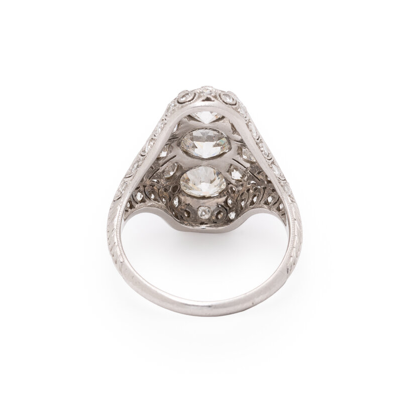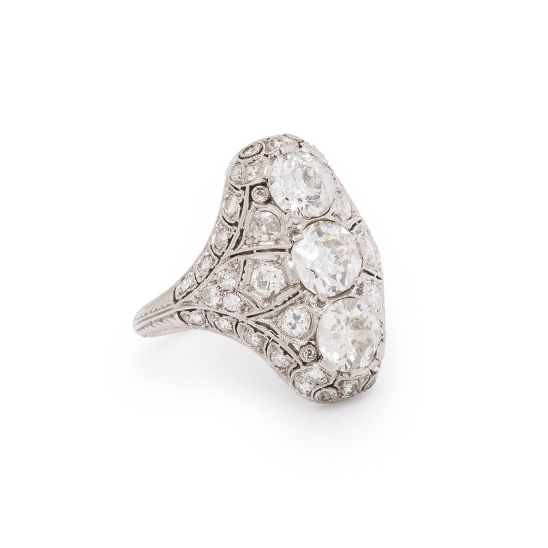 ANTIQUE, DIAMOND AND PLATINUM NAVETTE RING