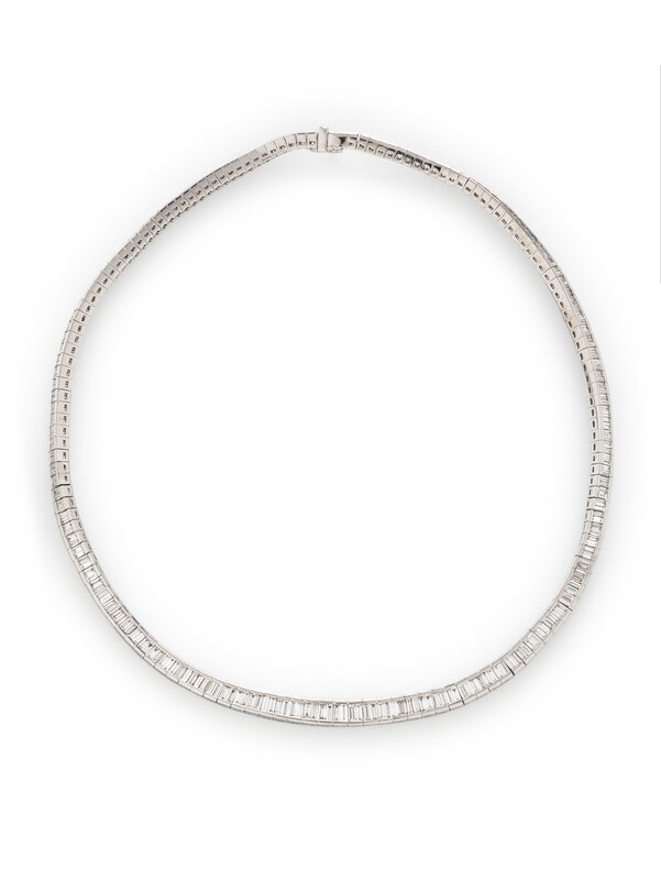 BAGUETTE DIAMOND AND PLATINUM RIVIÈRE NECKLACE
