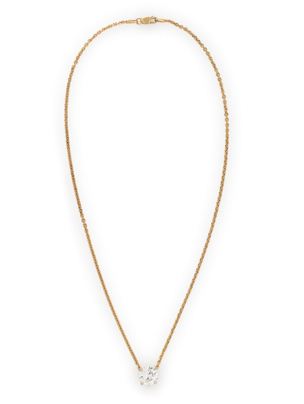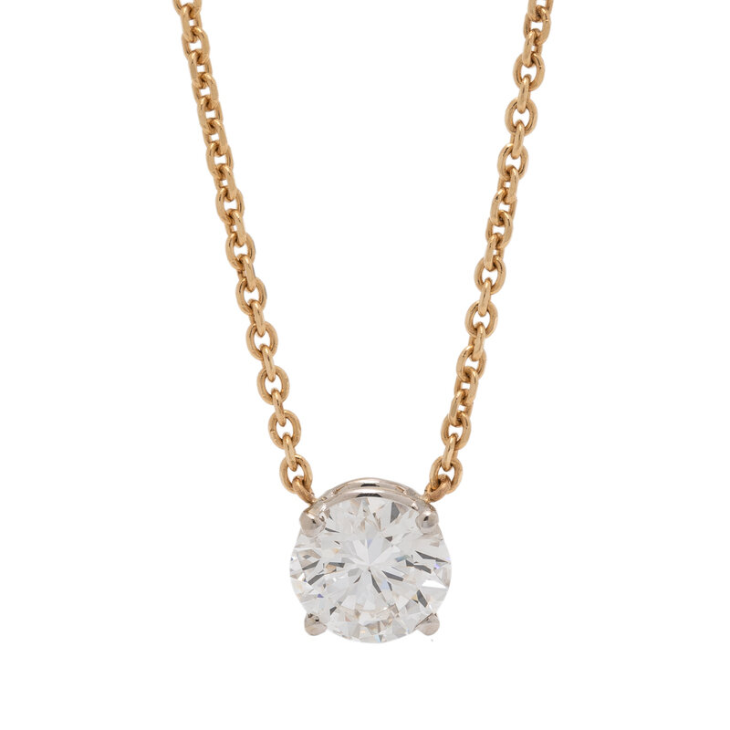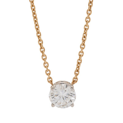 Featuring a round brilliant cut diamond weighing 2.52 carats. 14 karat yellow and white gold. 15 5/8 inches long.