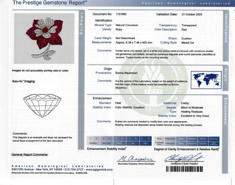 AGL, 2025, Report No. 1151663, Natural Corundum, Ruby, Burma (Myanmar), Heat