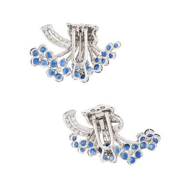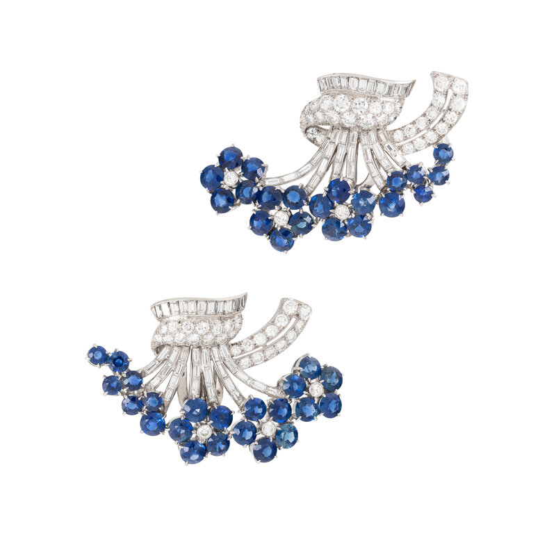 PAIR OF SAPPHIRE AND DIAMOND FLOWER CONVERTIBLE DRESS CLIPS