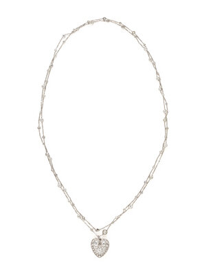 PLATINUM AND DIAMOND STATION CHAIN AND DIAMOND HEART PENDANT BROOCH