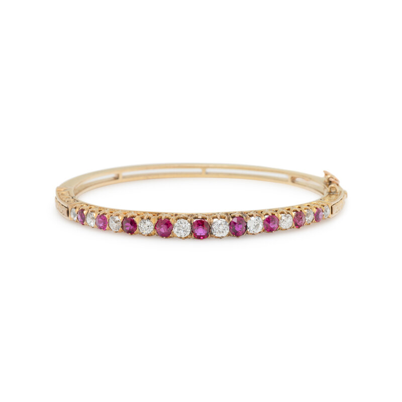 ANTIQUE, RUBY AND DIAMOND BANGLE BRACELET