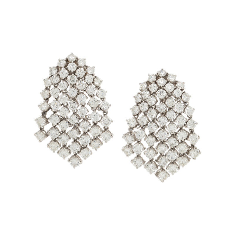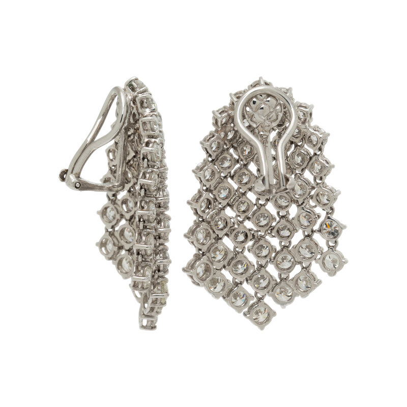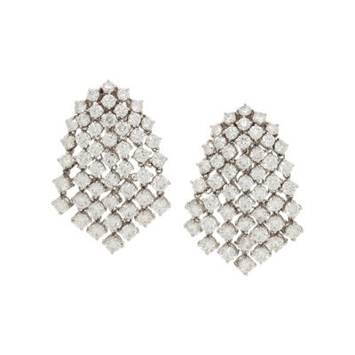 A flexible mesh style, set with numerous round diamonds weighing approximately 11.00 - 12.00 carats total. Mounted in 18 karat white gold. 1 9/16 inches long.